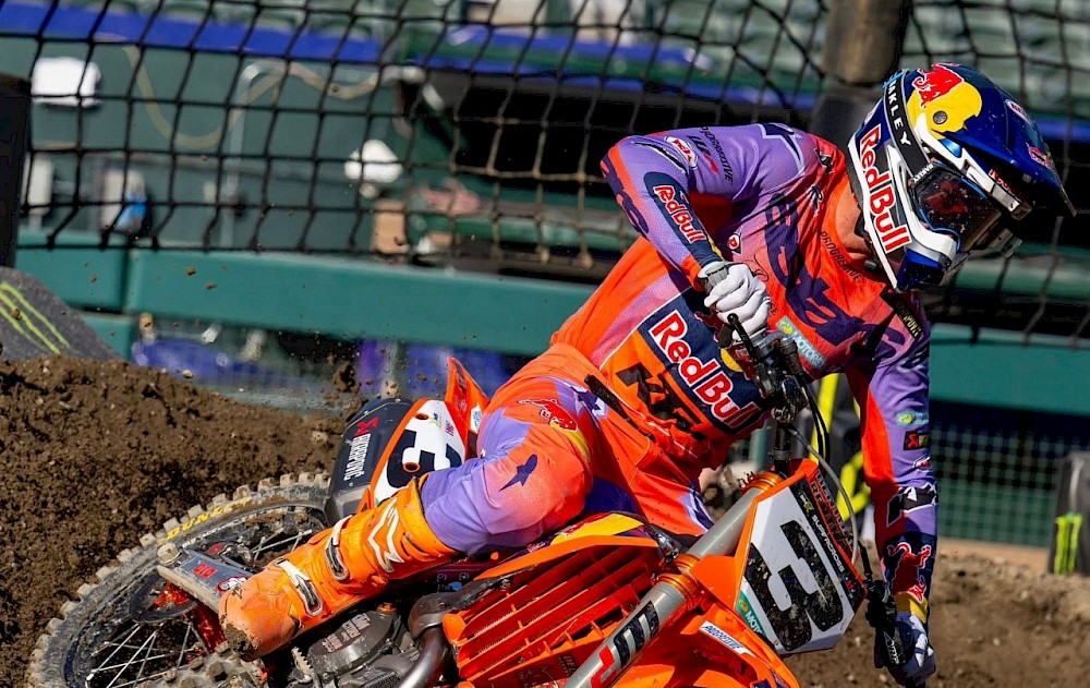 Úřadující superkrosový šampion Cooper Webb během závodu upadl po kolizi s Hunterem Lawrencem. Proto obsadil až sedmé místo.